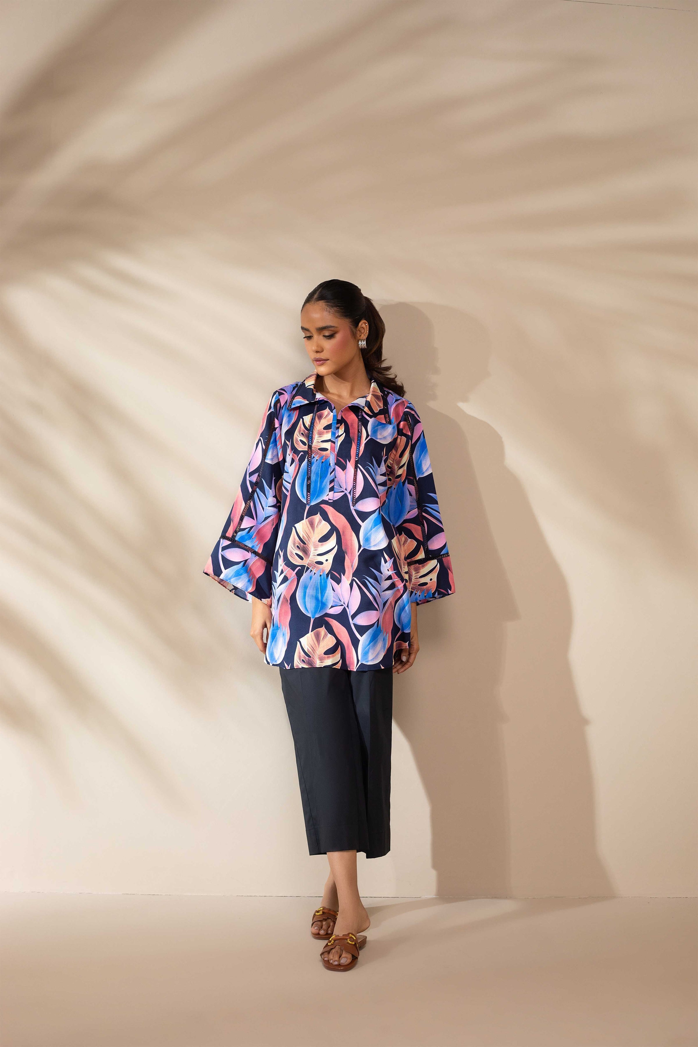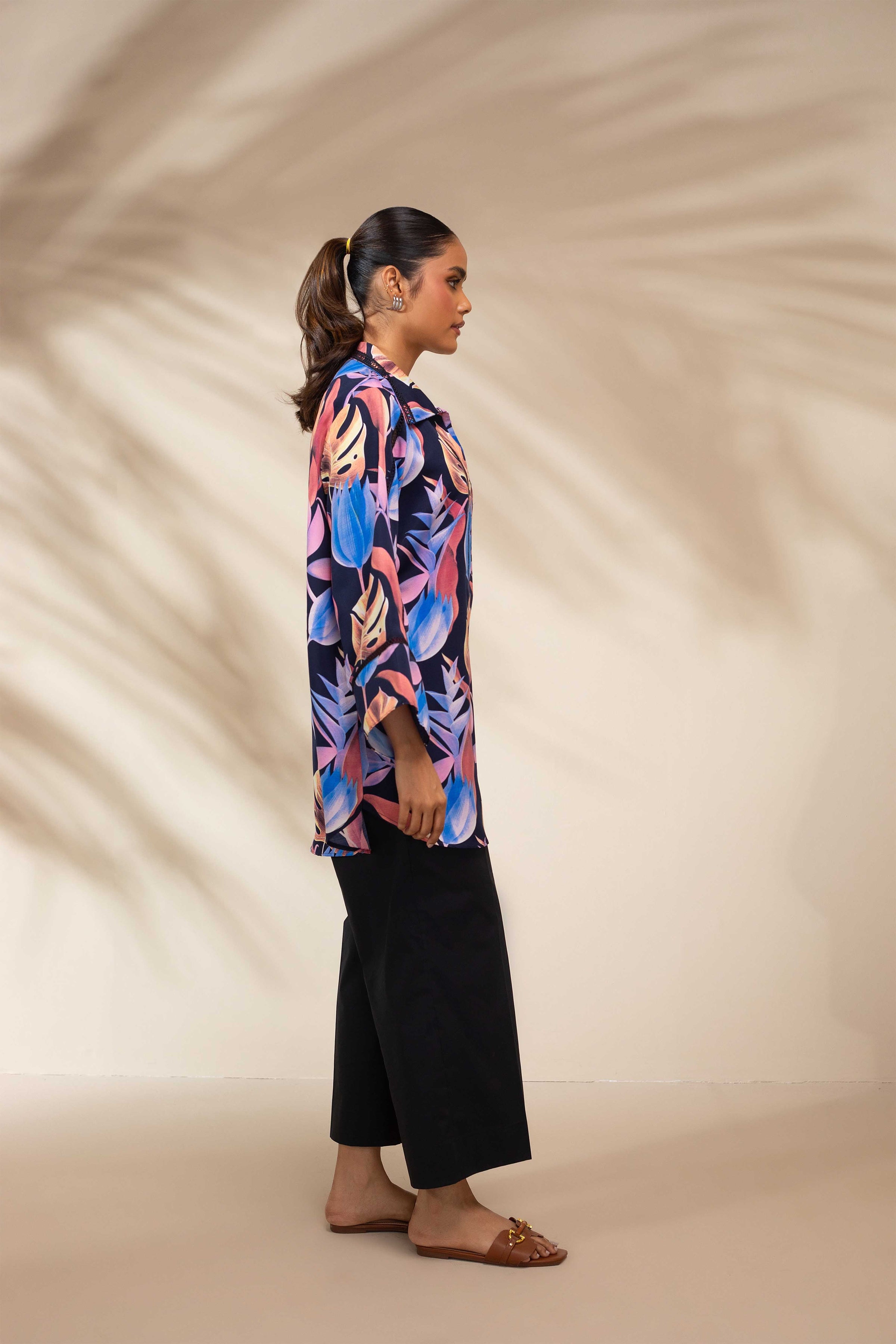 Design & Fit: Shirt Collar. Lace Detail. Short Length. Paired with Palazzo Pants.